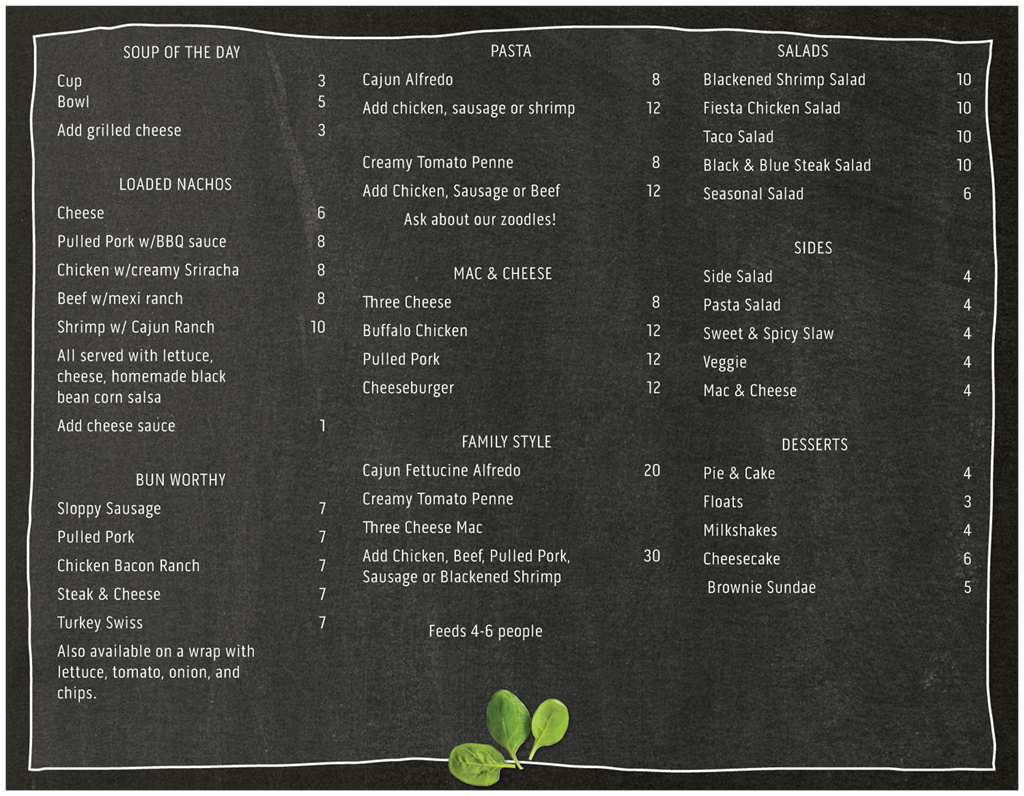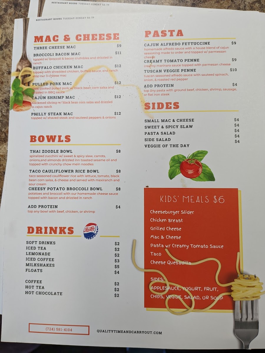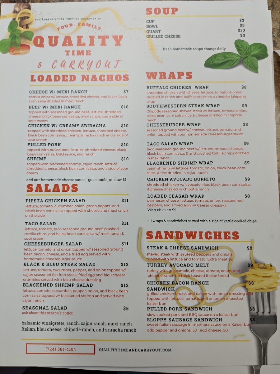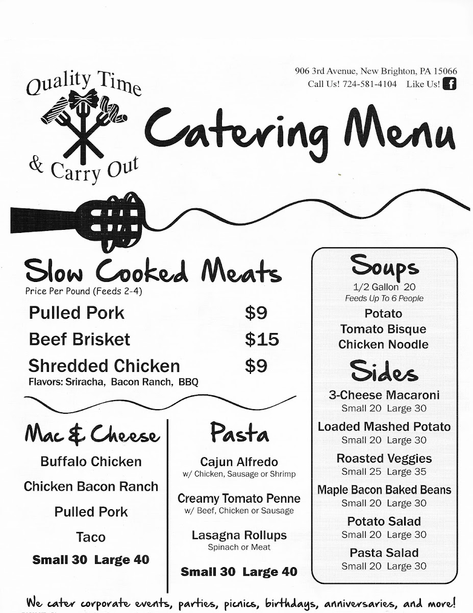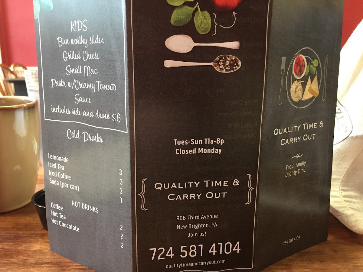 Quality Time & Carry Out Menu